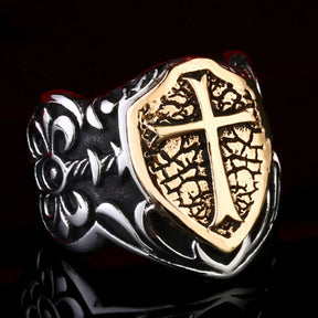 Knights Templar Ring - Cross Shield Titanium Steel 316L