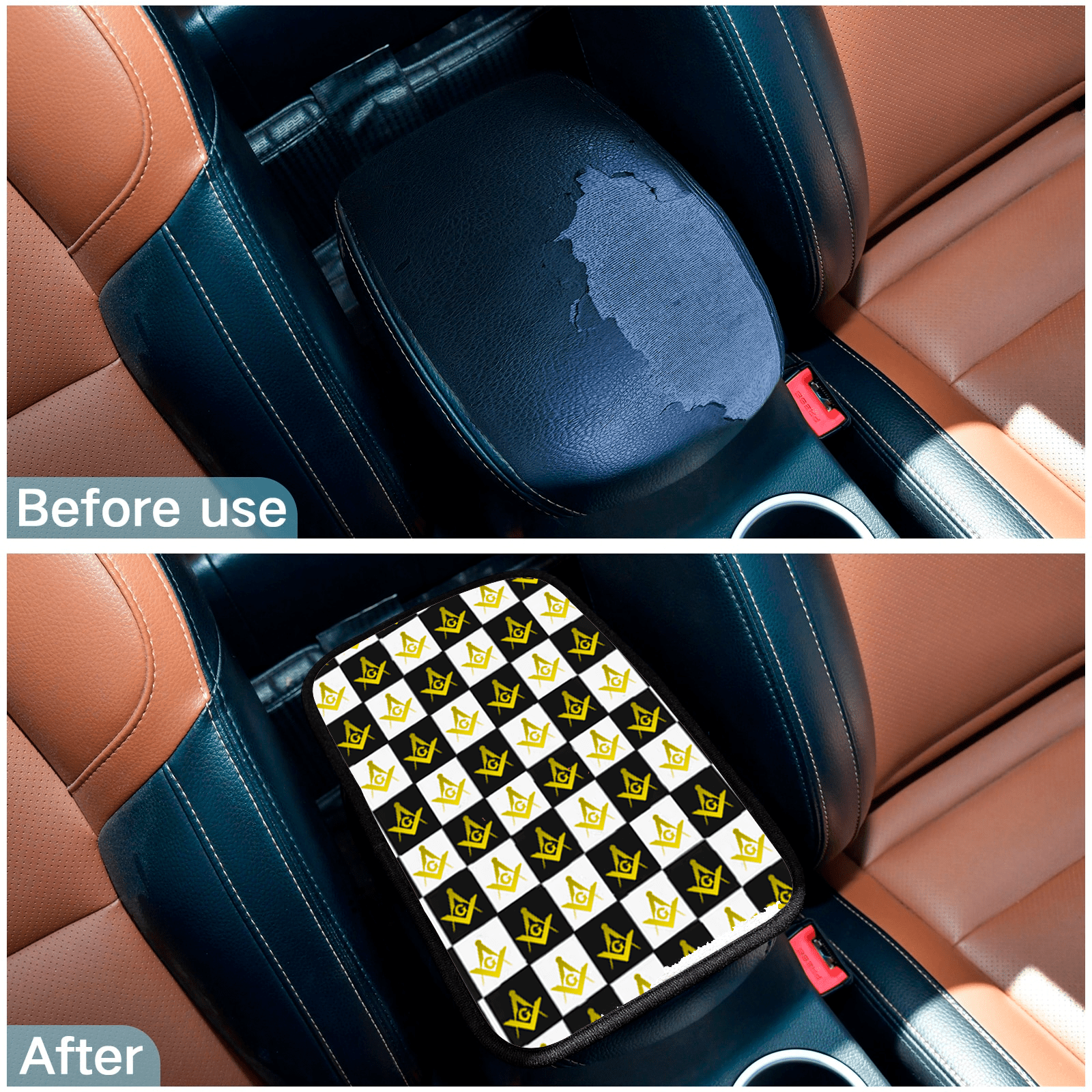 This Checkered Masonic armest cover is suitable for any car Center Console Armrest. It is super easy to install with elastic bands to help the Armest Pad Cover Stay in Place. The neoprene material is comfortable and breathable and also washable.